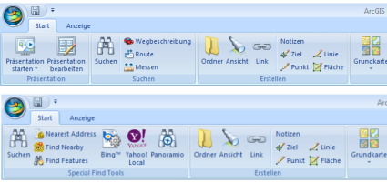 Durch Anpassen der Steuerelemente auf der Multifunktionsleiste können Sie die für Benutzer verfügbaren Funktionen in ArcGIS Explorer weiter einschränken. Weitere Informationen finden Sie im Abschnitt Anpassungen in der Anwendung weiter unten.