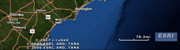 Je nach Vereinbarung für die Weitergabe von Daten ist eventuell ein Urheberrechtshinweis für die einem Layer zugrunde liegenden Daten erforderlich. Sie können diesen Hinweis in eine Bildschirmaufnahme einbeziehen. Informationen zum Urheberrecht für die einzelnen Layer werden im Laufe der Sitzung immer wieder in der Statusleiste angezeigt. Beim Befehl Ansicht in die Zwischenablage kopieren werden alle Layer-Copyrights erfasst und im aufgenommenen Bild angezeigt: