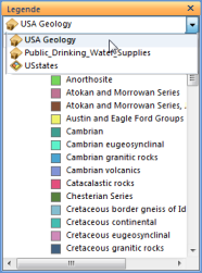 Zuoberst im Kombinationsfeld des Fensters wird eine Liste der Layer der Karte in alphabetischer Reihenfolge angezeigt. Sie können den Layer umschalten, sodass die Legende des Layers im Fenster angezeigt wird: