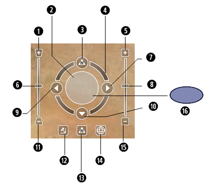| 6 | Drag to tilt up or down | 7 | Click to move East* | ||