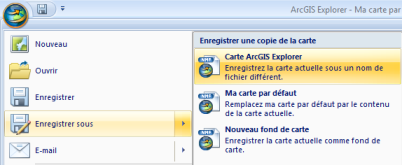 , pointez vers la flèche près de l'option Enregistrer sous, puis cliquez sur Carte ArcGIS Explorer :