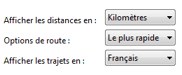 La fonction Rechercher des trajets propose des trajets d'un endroit à un autre. Son résultat est un itinéraire d'un point à un autre qui peut être affiché sur la carte ou être imprimé. Ce trajet consiste en une liste d'emplacements de points. Chaque emplacement de point contient des instructions de trajet localisées à cet endroit (une instruction étant composée, par exemple, de la direction dans laquelle tourner, la distance à parcourir et la dénomination de la route parcourue).
