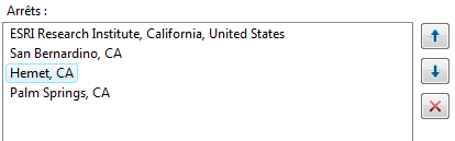 dans la partie droite de la liste. Le premier élément de la liste correspond toujours au premier arrêt et le dernier élément au dernier arrêt :