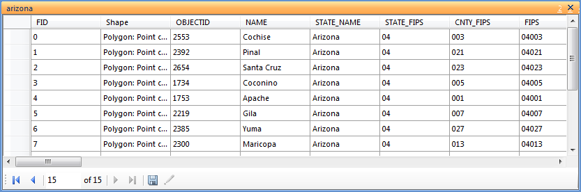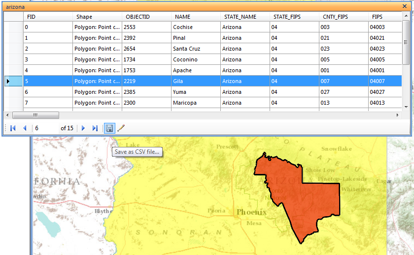 Une fenêtre de table affiche tous les enregistrements de la couche d'entités.