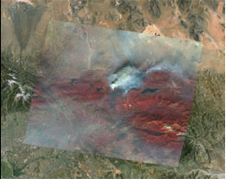 Dans l'exemple ci-dessous, l'image libellée Avant affiche un fichier raster local avec une emprise noire. En utilisant l'outil Définir la couleur transparente, vous affichez les valeurs RVB de la couleur sélectionnée dans les zones de valeur de la page Propriétés Couleur transparente du raster de la couche de rasters. Vous pouvez modifier ces valeurs ; après quoi, cliquez sur Appliquer ou sur OK pour afficher l'image avec la modification de la nouvelle couleur qui est désormais transparente comme dans le graphique Après ci-dessous. Vous constaterez que les données de la couche située au-dessous de la zone transparente du raster sont transparentes.