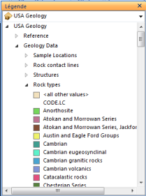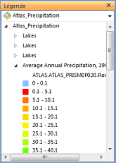 La zone de liste modifiable située en haut de la fenêtre affiche la liste des couches de la carte par ordre alphabétique. Vous pouvez faire basculer la couche pour afficher la légende de cette couche dans la fenêtre :