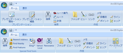 また、リボンにあるコントロールをカスタマイズすることで、ユーザによる ArcGIS Explorer を使った作業をさらに細かく制限できます。以下の「アプリケーションのカスタマイズ」を参照してください。