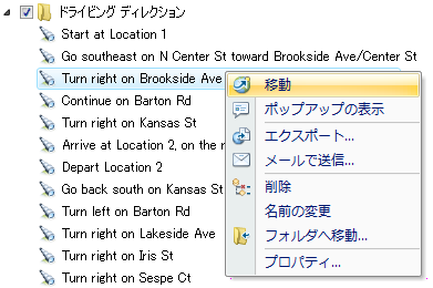 ルート上の任意のストップまたはターン位置に対して移動やズームなどの操作を実行するには、ストップまたはターンを選択して [ツール] タブのコントロールを使用するか、[ストップ] リストでストップを右クリックするか [ディレクション] リストでターンを右クリックし、いずれかのショートカット メニュー コマンドを選択します。