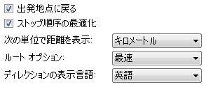 移動距離を表示する単位、およびディレクションの表示言語を指定できます。リスト内の最上位のストップが常に出発地点になります。