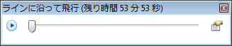[ラインに沿って飛行のオプション] ダイアログで、[移動速度] コントロールのサムを右へ動かすと、アニメーションの再生スピードが速くなります。