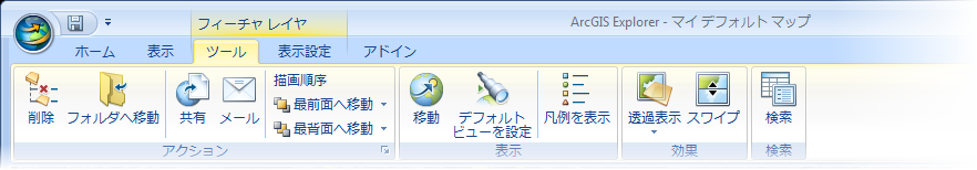 シェープファイルおよびジオデータベース データに対して実行可能な操作を次の表に示します。これらのコントロールは [ツール] タブに表示されるほか、フィーチャ レイヤを右クリックして表示されるコンテキスト メニューから実行することもできます。