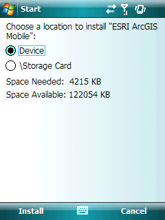 You will be asked to choose where you would like to install the application (on the device or on a storage card). You can install the ArcGIS Mobile application on any storage mechanism on the device. However, if you consider installing onto a storage card, consider how the storage card will be used an if the card is dedicated to use with the mobile device.