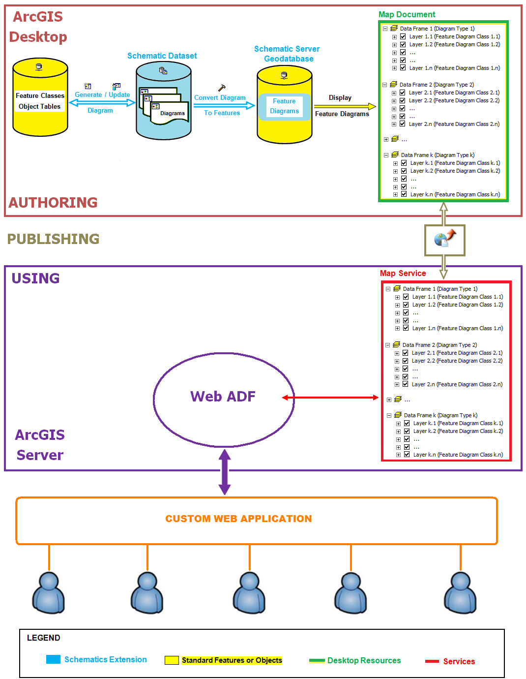Schematics diagram resources can not be directly published and displayed within ArcGIS Server. The following paragraphs explain the way of working to display schematic diagrams within ArcGIS Server.