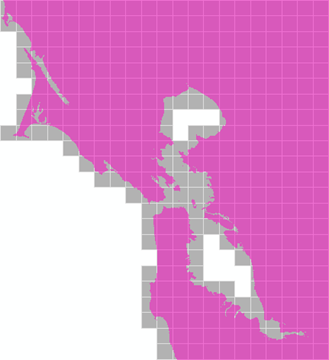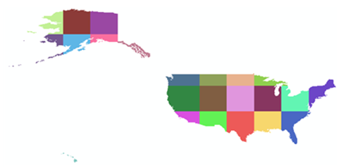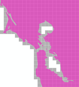 The images below show how very similar sets of tiles get created whether you use a detailed or a generalized feature class. The second feature class has had most of the vertices removed using the Simplify Polygon tool. The gray squares represent a 4096 x 4096 supertile at about 1:4500.