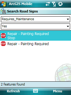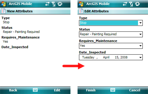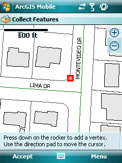 Using the ArcGIS Mobile application you can create new features using your stylus or a GPS receiver or by entering XY coordinates with the Collect Features task. You can also update the attributes of existing features. In order to update existing features, you must first search for them using the Search Features task.