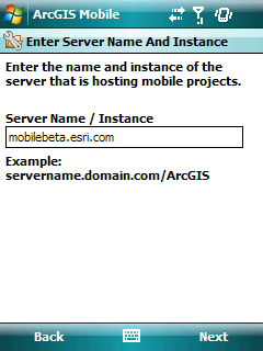 Note: You must first have established a network connection on your Windows Mobile device to the location of your web server. Please follow the device instructions for establishing a desktop passthrough connection using ActiveSync for Windows XP or Windows Mobile Device Center for Windows Vista. Your Windows Mobile device must also meet the system requirements for ArcGIS Server - it must be running Windows Mobile 5 Pocket PC Edition or Windows Mobile 6 Professional and already contain the update for CompactFramework 2.0 SP2.
