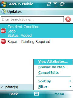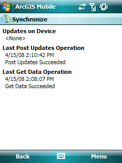 In the previous two sections of this tutorial, you created a new feature and updated an existing feature. With updates complete, you can synchronize your changes back to the server. Using the ArcGIS Mobile application, you are in complete control of the synchronization process.