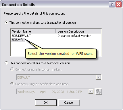 In the Version Manager dialog select the version dedicated to WFS users and click OK.