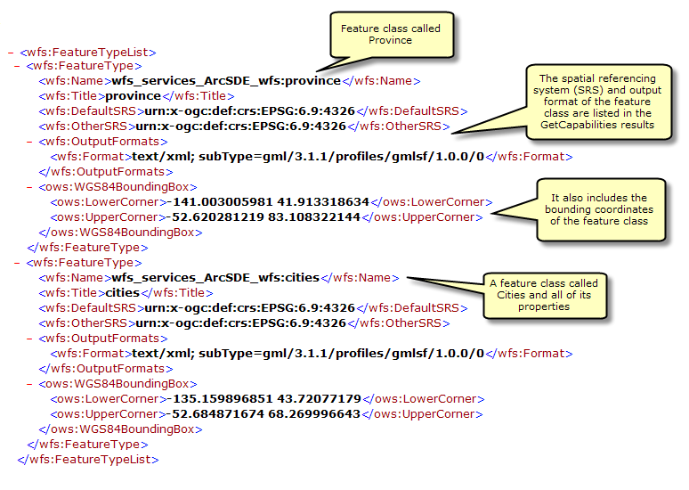 GetCapabilities also returns a list of all available feature classes and tables: