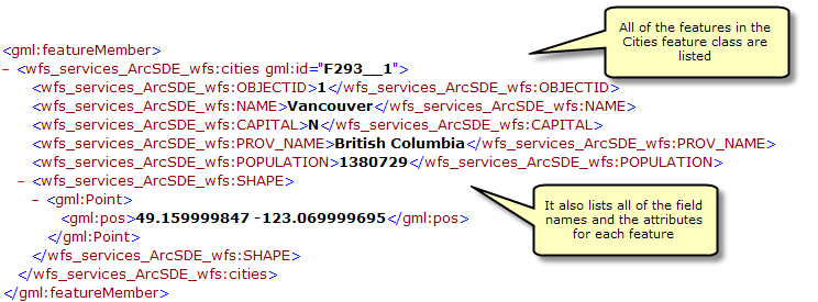 Once you have published a WFS service it can be used in any client that supports WFS 1.1 and the Simple Features profile of GML including web browsers. You can also use the Data Interop extension in ArcCatalog and ArcMap to work with WFS services. The following sections will show you how to access WFS services through a web browser and the Data Interop extension in ArcCatalog.