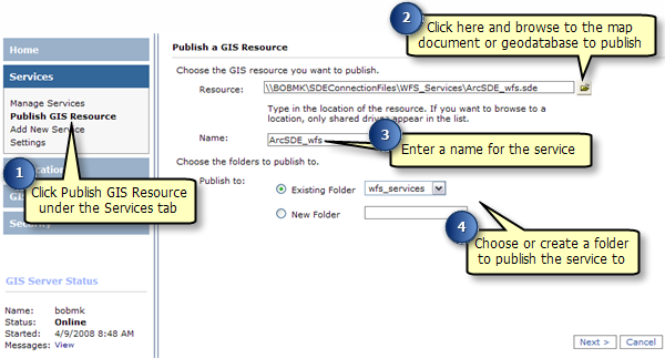 Follow these steps to create your geodata or map service: