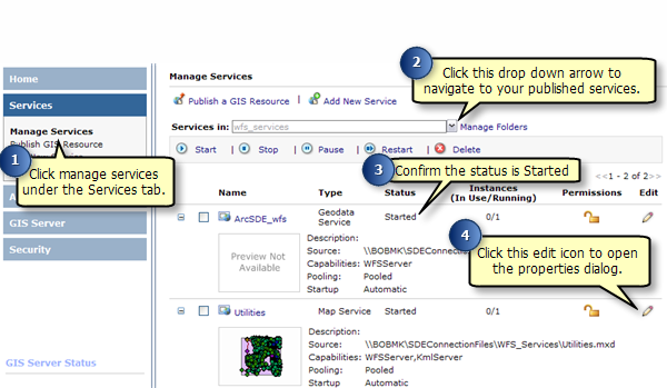 If you have an existing service that does not have WFS capabilities enabled, follow these steps to enable it: