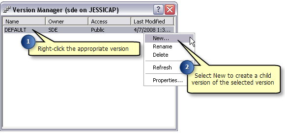 In the version manager dialog, right-click on the version you wish to create a child version of and click New. This creates a new version that can be used by WFS editors.