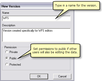 Type in a name for the new version. If users other than the creator will be editing the data, the Permission option must be set to Public.
