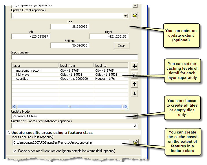 Learn more about automating cache creation and updates with geoprocessing.